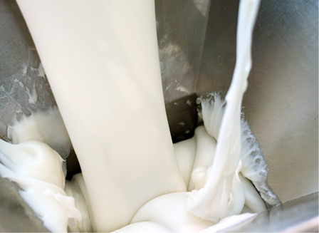 お米に水を加え、蒸気の熱をあてながら蒸しあげて、モチ生地に。蒸したてはアツアツです。