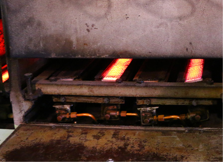 約180本あるバーナーを一本一本見て温度調整。気温や湿度によって焼き温度や時間は変わります。